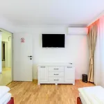 Apartamentul de 110 m² are o bucătărie complet utilată cu cuptor cu microunde și ustensile de bucătărie. De asemenea, această proprietate pune la dispoziție o mini-bar și mașini de cafea/ceai pentru oaspeți. Stația de autobuz Izlaz se află la 250 de metri distanță.
